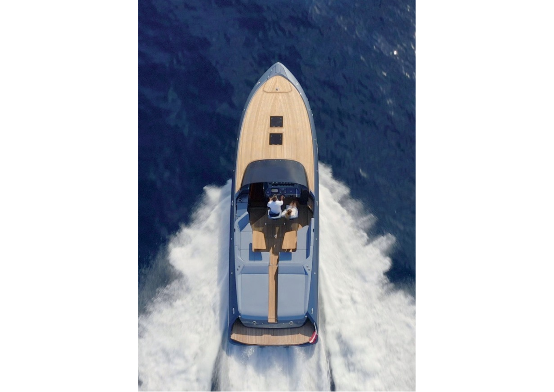 superyacht. With an overall length of 11.99 m, a 3.5 m beam, and twin 440 hp engines, she delivers smooth, confident performance in excess of 40 knots.