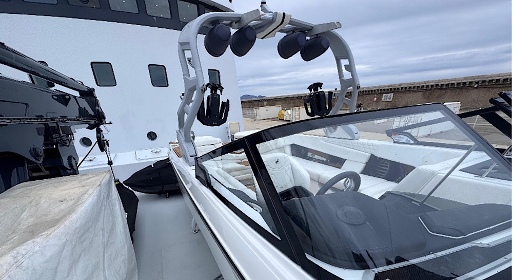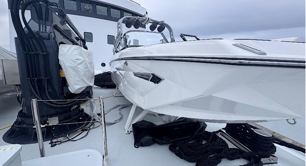 Yacht tender specific spec with folding tower, lifting points and diesel engine.