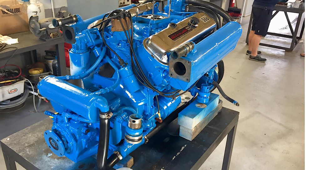 This stunning, later, 9.62 metre 1984 RIVA ST. TROPEZ was restored to like-new condition in 2021, with engines removed and re-built. Powered by Riva Crusader Marine V8 R350 thermo electron petrol engines, showing under 1000 engine hours, with direct transmission in the shaft line with Velvet Drive type transmission, reduction ratio 1.1 with upgraded electronic ignition. The propulsion is controlled by classic Riva instrumentation, throttle and gear levers . The electrical system is 12 V D.C with three rechargeable batteries from the alternators of the right and left engine with fuses to protect the various lines positioned under the dashboard, and two battery switches can completely disconnect all users from the batteries with the exception of the two automatic bilge pumps. Also benefitting from an In-Charge remote system, monitoring battery, bilge, temperature and intrusion.